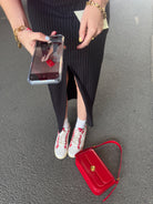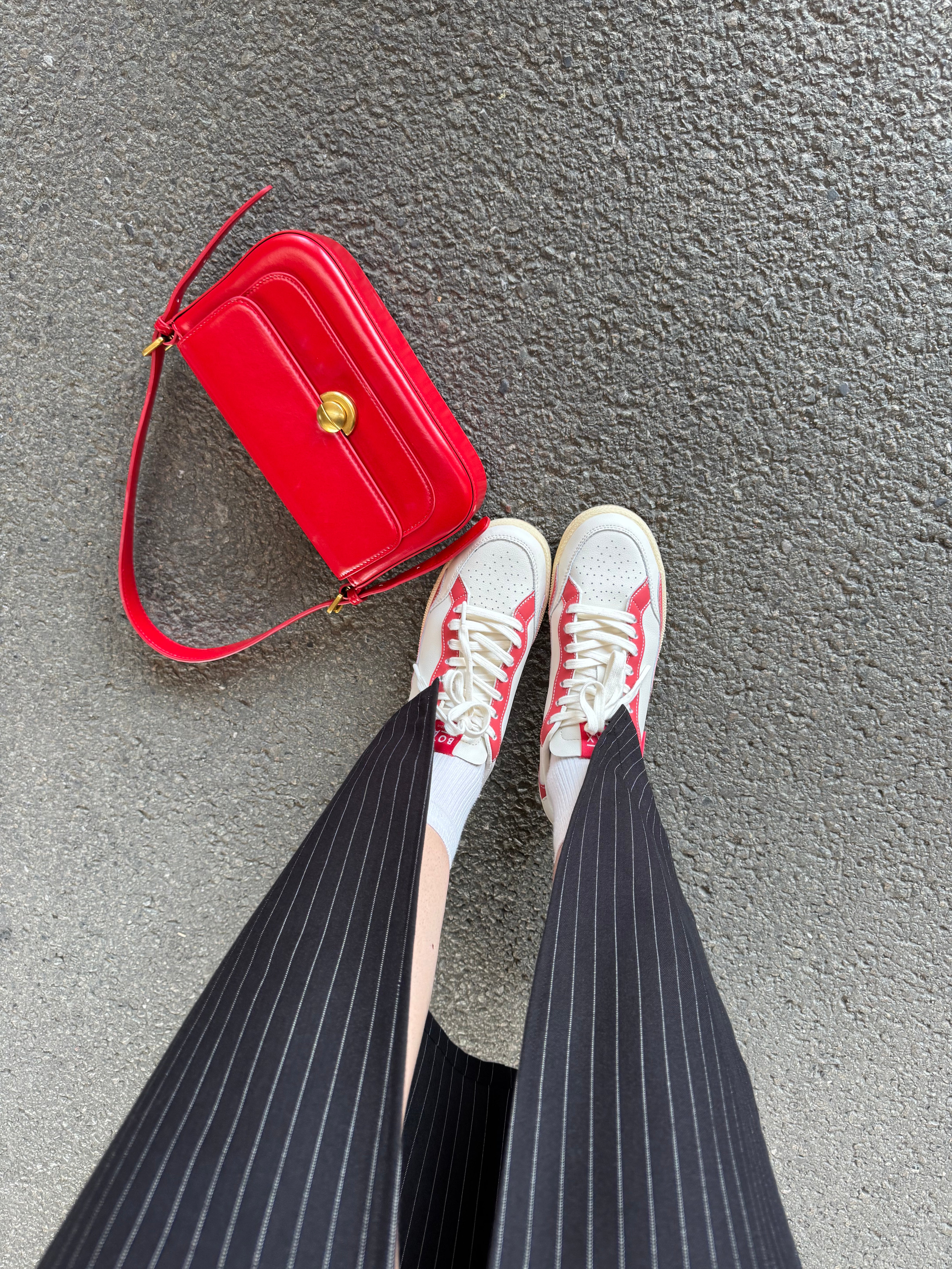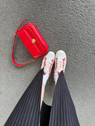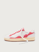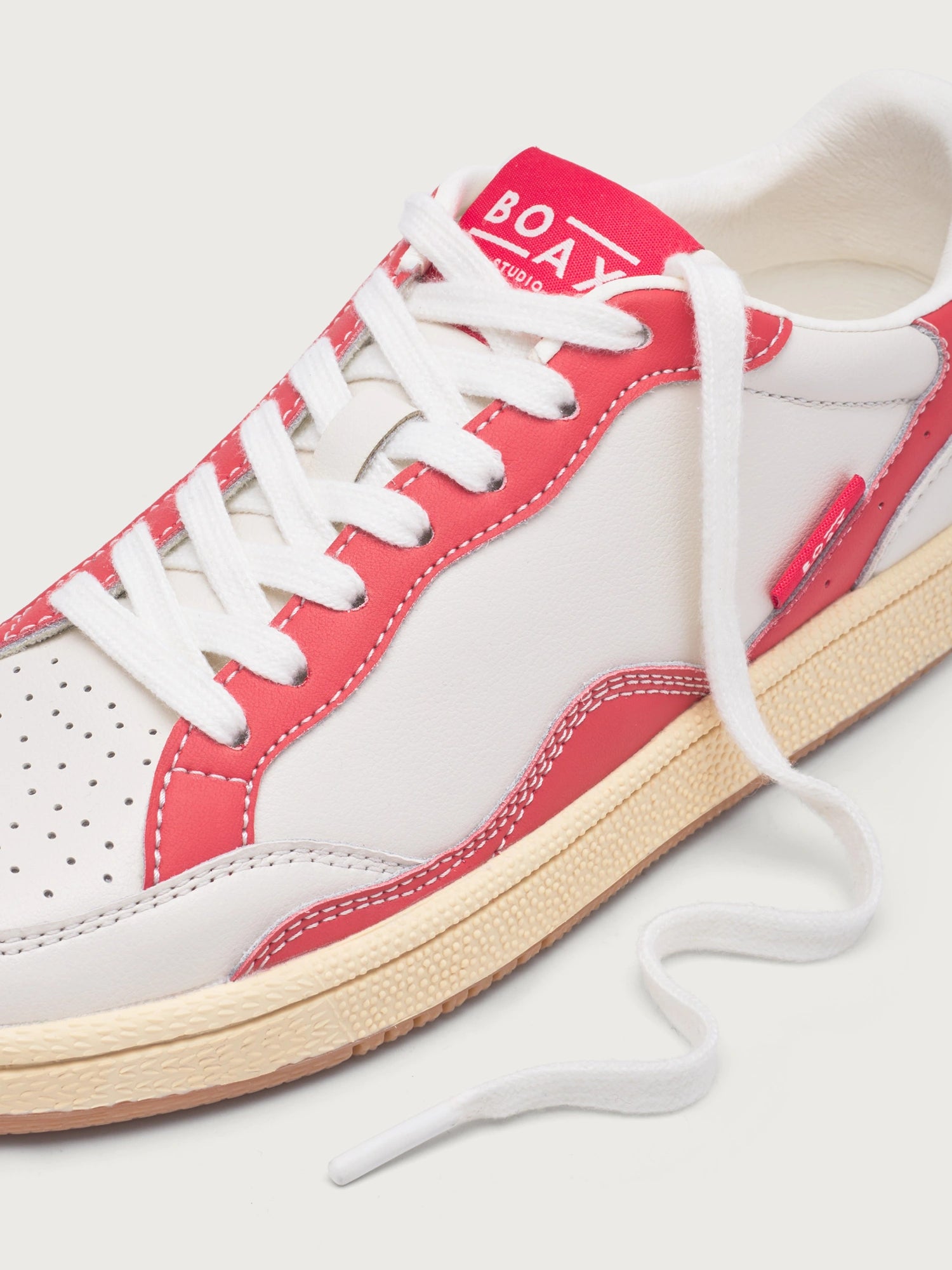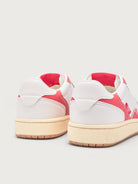 This sneaker brings a fresh pop of color with its vibrant red accents, contrasted against a clean white base. The design offers a playful, sporty look while maintaining versatility, making it easy to pair with a range of casual outfits. The lightweight rubber sole ensures comfort, allowing for all-day wear whether you're on the move or relaxing.