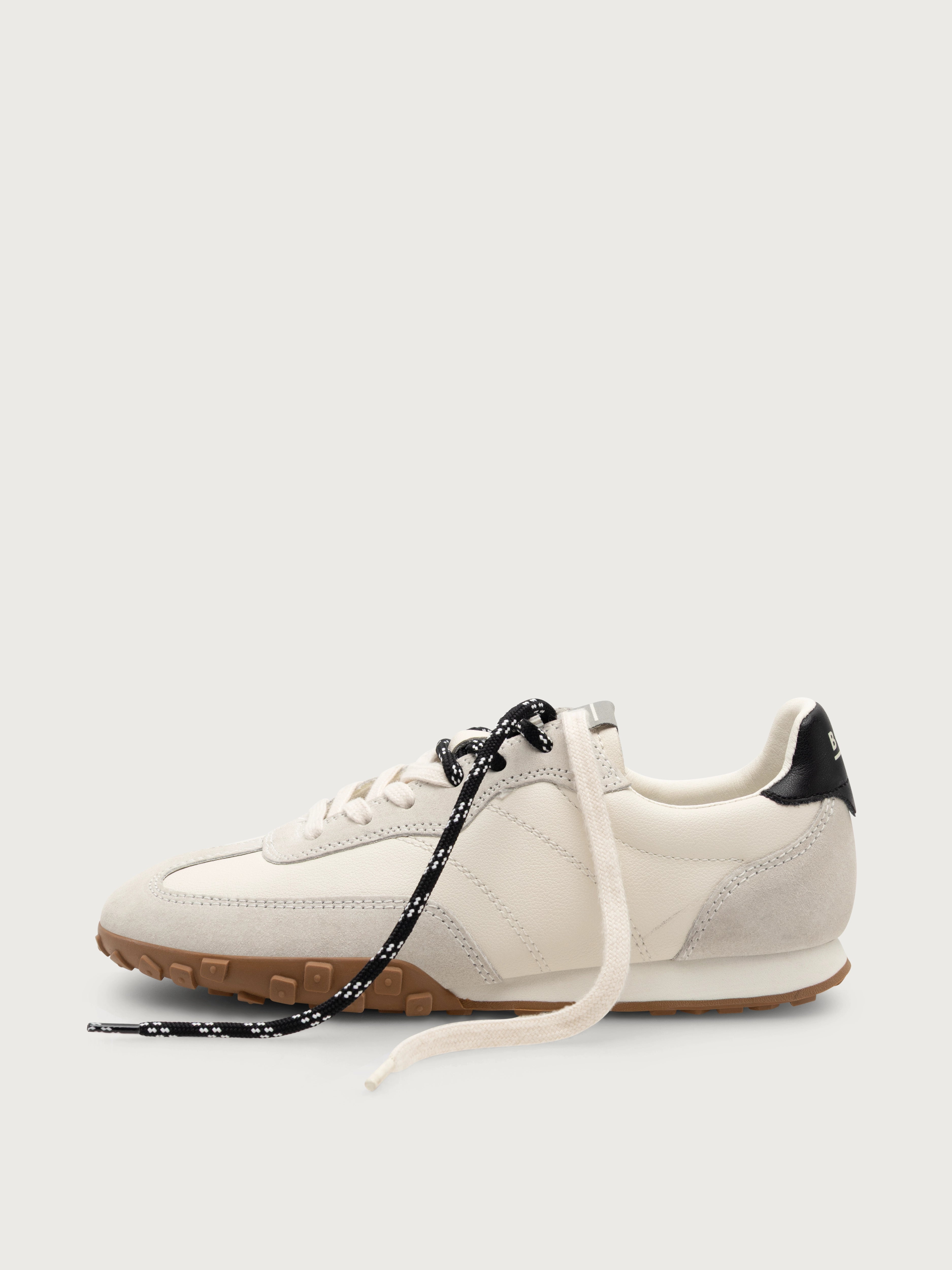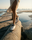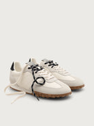 This sneaker features a clean, neutral design with a soft beige upper and a caramel sole. The subtle black heel accent adds contrast, giving the shoe a modern and sleek finish. With its lightweight construction and textured sole, this sneaker offers both style and comfort for everyday wear.
